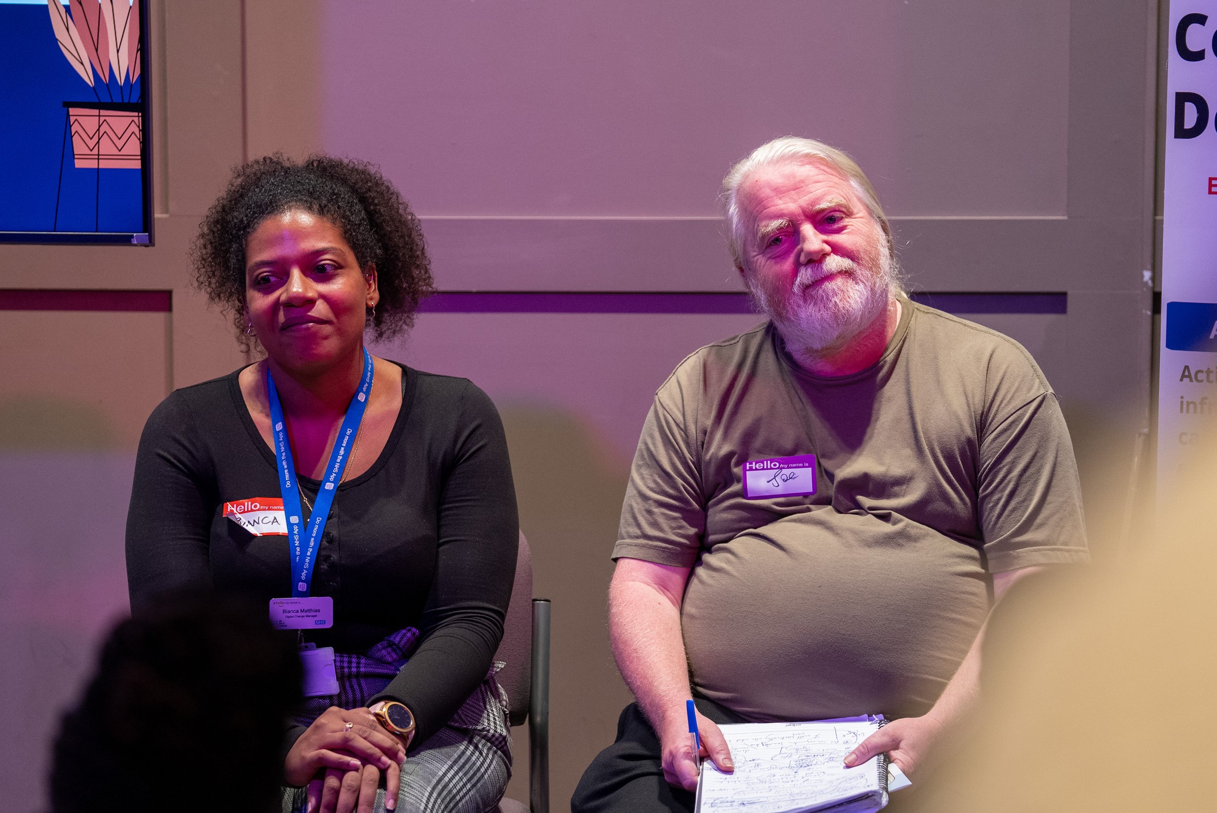 Bianca Matthews (Digital Change Manager) & Joe Duggan (Community Development Worker) delivering a Panel Session at the event